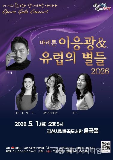 (케이시사타임즈) 김천시 문화예술회관은 오는 5월 1일 오후 5시 율곡도서관 율곡홀에서 오페라 갈라 콘서트 '바리톤 이응광 & 유럽의 별들 2026'를 개최한다.