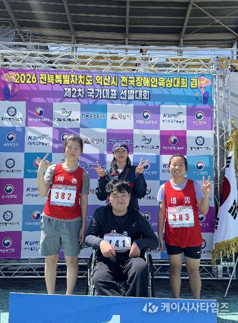 (케이시사타임즈) 세종특별자치시 육상 선수들이 녪전북도 익산시 전국장애인육상대회 겸 제2차 국가대표 선발대회’에서 금메달 4개와 은메달 2개를 획득했다.