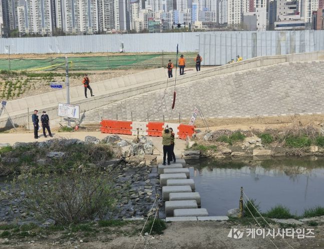 (케이시사타임즈) 군포시는 4월 13일 안양천 일원에서 시간당 100mm 이상의 극한강우 상황을 가정한 재난 대응 및 복구 훈련을 실시했다.