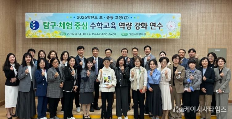(케이시사타임즈) 대전교육정보원 부설 대전수학문화관은 4월 14일과 15일 총 2회에 걸쳐 ‘2026학년도 초·중등 교장 및 교감 탐구·체험 중심 수학 교육 역량 강화 연수’를 실시했다고 밝혔다.
