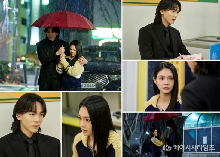 오는 18일(토) 밤 10시 30분 방송될 11회에서는 정이친과 주세빈이 ‘천둥번개 포옹’ 이후 한층 더 가까워진 심리적 거리를 드러내는 ‘예측 불가 로맨스 신호탄’ 장면이 펼쳐진다. 극 중 신주신과 금바라가 한 우산을 함께 쓴 채로 딱 붙어 밀착한 채 걷는가 하면, 마주 앉아 오붓하게 라면을 먹는 장면. 신주신은 평소의 냉랭함은 온데간데없이 그윽한 눈빛과 은근한 미소로 애정 공세를 벌이고, 금바라 역시 이전보다 한결 부드러워진 눈 맞춤으로 편안해진 두 사람의 사이를 드러낸다. 신주신이 금바라를 향해 노골적인 직진 감정을 가감 없이 내비치면서 조금씩 흔들리는 금바라의 마음이 어떻게 될지, 신주신의 의미심장한 예언이 맞게 될지 궁금증을 높인다.