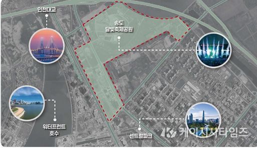 송도 달빛축제공원 일원은 인천대교, 워터프런트 호수, 센트럴파크 경관이 있고, 인천국제공항과 가까우며, 인천지하철 1호선이 인접하는 등 훌륭한 입지여건을 갖추고 있다고 판단된다.