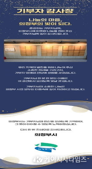 시 관계자는 “기부자 여러분의 애정 어린 관심과 참여가 의정부의 미래를 밝게 이끌어 주고 있다”며 “앞으로도 기부자 한 분 한 분의 마음을 귀히 새기며, 기부 문화가 더욱 확산될 수 있도록 최선을 다하겠다”고 말했다.