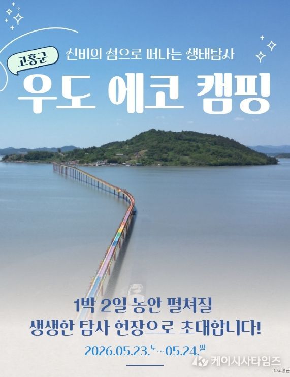 (케이시사타임즈) 고흥군은 오는 5월 23일부터 24일까지 1박 2일간 고흥군 우도 일대에서 ‘신비의 섬으로 떠나는 생태탐사 '우도 에코 캠핑'’을 개최한다고 밝혔다.