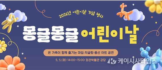 (케이시사타임즈) 부산시립박물관 소속 정관박물관은 오는 5월 5일 '제104회 어린이날'을 맞아 온 가족이 함께 즐길 수 있는 기념 행사 '몽글몽글 어린이날'을 개최한다고 밝혔다.
