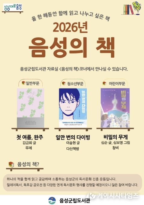(케이시사타임즈) 음성군은 책으로 소통하는 독서문화를 확산하기 위한 2026년 ‘음성의 책’을 최종 선정했다고 밝혔다.