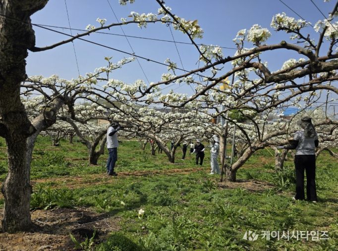 (케이시사타임즈) 아산시가 본격적인 영농철을 맞아 농촌 인구 감소와 고령화로 어려움을 겪고 있는 과수 농가를 위해 지난 4월 12일부터 16일까지 ‘아산맑은배 인공수분(화접) 지원 일손돕기’를 대대적으로 추진했다.