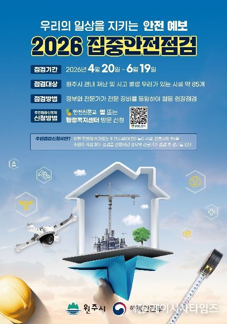 (케이시사타임즈) 원주시는 4월 20일부터 6월 19일까지 61일간 ‘2026년 집중안전점검’을 추진한다.
