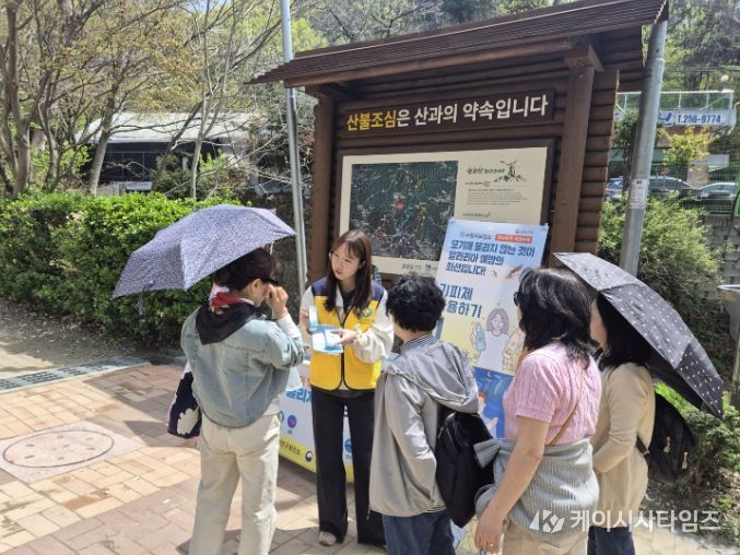 (케이시사타임즈) 수원시 장안구보건소가 16일 광교산 등산안내소 앞에서 등산객과 시민을 대상으로 ‘모기·진드기 매개 감염병 예방 캠페인’을 펼쳤다.