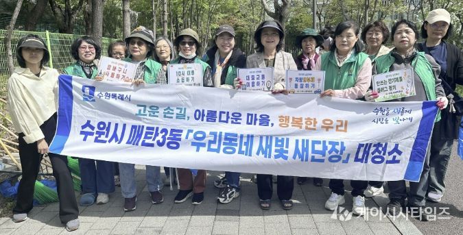 (케이시사타임즈) 수원시 영통구 매탄3동은 지난 4월 16일 매탄3동 새마을부녀회가 지역사회의 쾌적한 환경 조성과 공동체 의식 함양을 위해 환경정화 활동에 나섰다고 밝혔다.