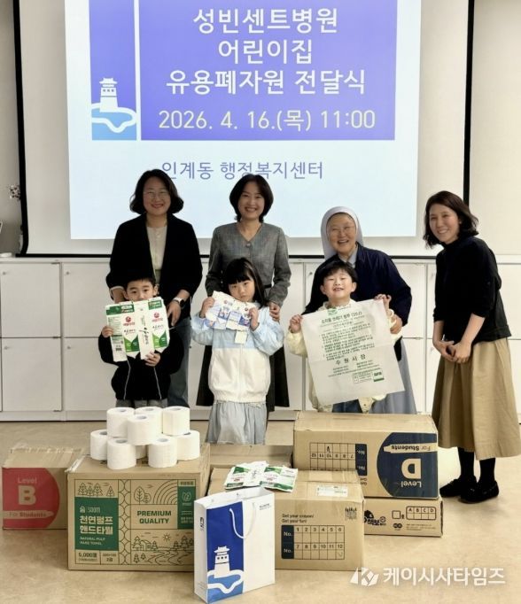 (케이시사타임즈) 수원시 팔달구 인계동은 지난 16일 오전, 성빈센트병원 어린이집으로부터 아이들이 정성껏 모은 유용 생활 폐자원을 전달받았다고 밝혔다.