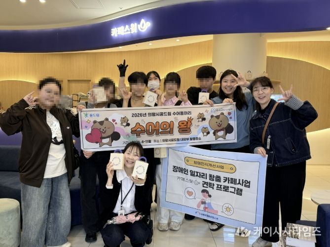 (케이시사타임즈) 의왕시청소년재단 산하 의왕시학교밖청소년지원센터가 4월 16일, 수어동아리 청소년들을 대상으로 사회적협동조합 ‘카페스윗’ 서울대입구역점을 방문해 체험활동을 진행했다.