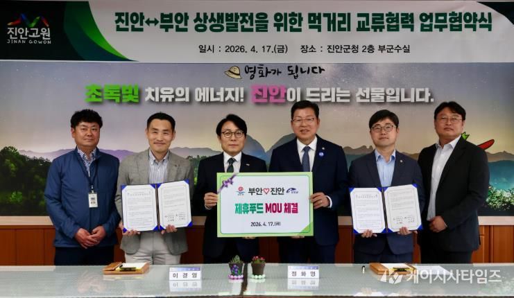 (케이시사타임즈) 부안군은 17일 지역 간 먹거리 교류 활성화와 로컬푸드 경쟁력 강화를 위해 진안군과 먹거리 교류협력 업무협약을 체결했다고 밝혔다.
