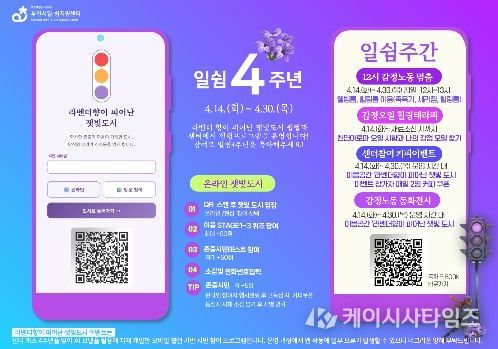 센터는 “개소 4주년을 맞아 디지털 기술을 접목한 새로운 시도로 시민들에게 다가가고자 한다”며 “동화 속 라벤더 향기가 잿빛 도시를 변화시켰듯, 일쉼주간을 통해 감정노동자의 일상이 존중과 응원으로 채워지길 바란다”고 밝혔다.