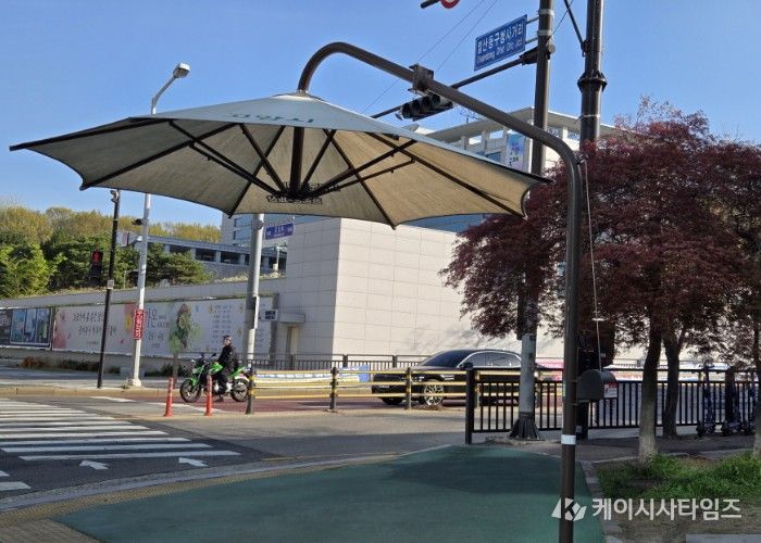 일산동구는 교통섬과 신호등 앞 등 그늘이 없는 지역에 3~5m 규모의 그늘막을 설치해 강한 햇빛으로 인한 보행자 불편을 해소하고 있다.