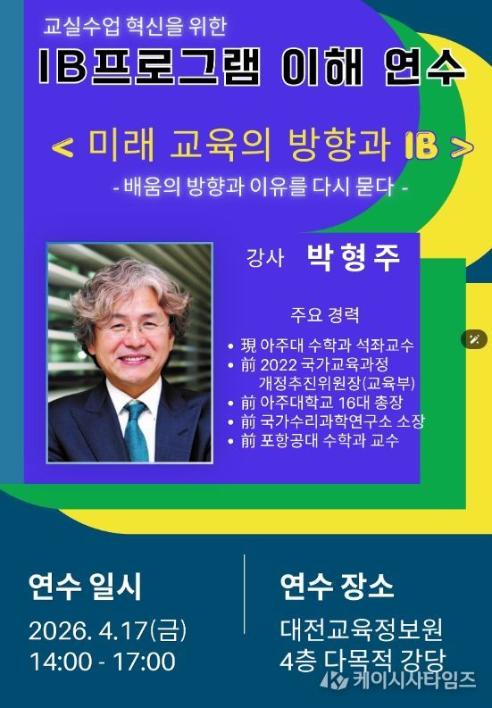 (케이시사타임즈) 대전시교육청은 4월 17일 오후 대전시교육청 대강당에서 관내 교원 및 교육 전문직원 210명을 대상으로 ‘2026학년도 IB 프로그램 이해 연수’를 개최했다.