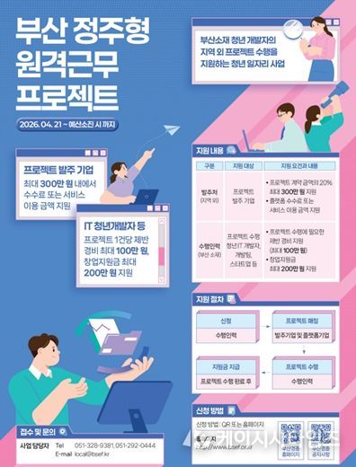 (케이시사타임즈) 부산시는 지역 청년 아이티(IT) 인력이 부산에 거주하면서 국내외 기업의 프로젝트를 수행할 수 있도록 지원하는 '부산형 마이크로 일자리 기반 정주형 원격근무 프로젝트' 사업을 전국 최초로 올해 시범 추진한다고 밝혔다.