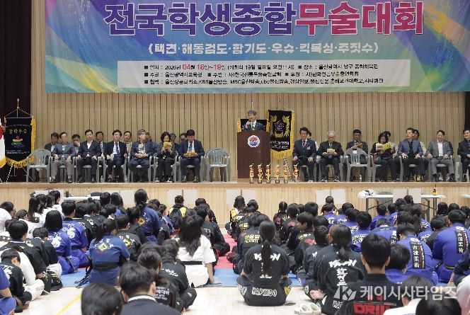 (케이시사타임즈) 울산광역시교육청은 18일부터 19일까지 남구 종하이노베이션 체육관에서 전국 초중고 학생 850여 명이 참가한 가운데 ‘제14회 울산광역시교육감기 전국학생종합무술대회’를 열었다.