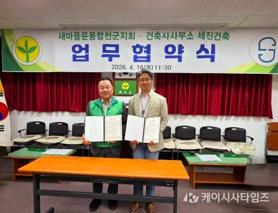(케이시사타임즈) 새마을운동합천군지회(회장 정성철)와 건축사사무소 세진건축(대표 김세환)은 16일 새마을지회 회의실에서 군 및 읍·면 남녀 회장 40명이 참석한 가운데 업무협약식을 개최했다.