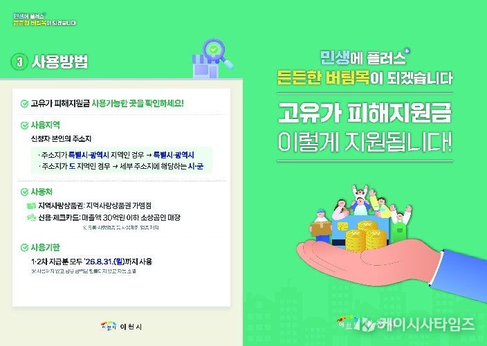 또한 시민들의 혼선을 최소화하고 편의를 높이기 위해 ▲시행 첫 주 출생연도 끝자리 기준 요일제 신청(월요일 1·6, 화요일 2·7, 수요일 3·8, 목요일 4·9·5·0, 금요일부터 요일제 해제) ▲찾아가는 신청 서비스 ▲읍면동 행정복지센터 보조인력 투입 ▲국민비서 사전알림 등 다양한 지원 체계를 마련할 예정이다. 지원금은 1·2차 지급분 모두 8월 31일까지 사용할 수 있다.