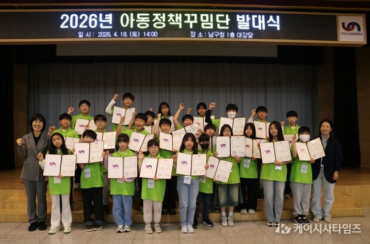 (케이시사타임즈) 부산 남구는 지난 4월 18일 구청 1층 대강당에서 '2026년 아동정책꾸밈단 발대식'을 개최하고, 아동 참여 기반 정책 활동을 본격적으로 시작했다고 밝혔다.