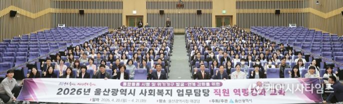 (케이시사타임즈) 울산시는 4월 20일부터 21일까지 양일간 시청 본관 2층 대강당에서 ‘2026년 통합돌봄 시행 및 위기가구 발굴·연계 강화를 위한 사회복지 업무담당 직원 역량강화 교육’을 실시했다고 밝혔다.