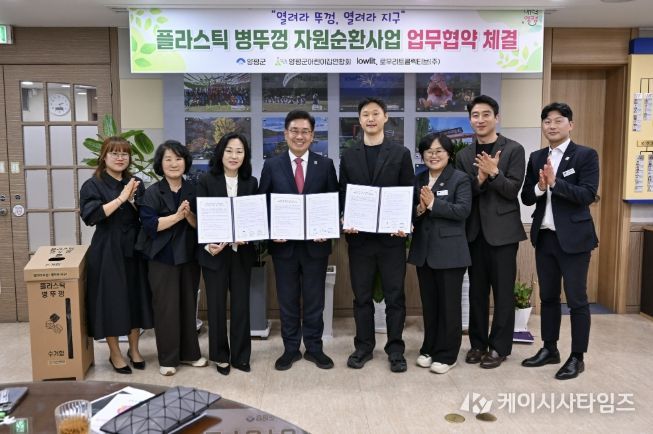 (케이시사타임즈) 양평군은 지난 21일 양평군어린이집연합회, 로우리트 콜렉티브(주)와 함께 ‘열려라 뚜껑, 열려라 지구’ 플라스틱 병뚜껑 자원순환사업 업무협약을 체결했다고 밝혔다.