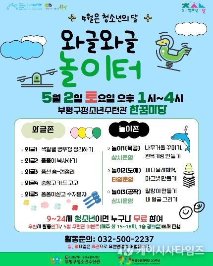 (케이시사타임즈) 부평구청소년수련관은 오는 5월 2일 청소년 체험 행사 ‘와글와글 놀이터’를 운영한다고 밝혔다.