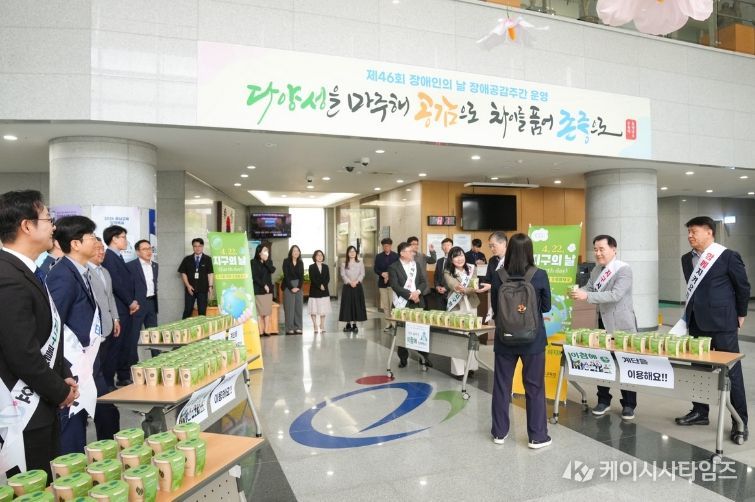 22일 오전에는 ‘생명 씨앗 나누기’ 행사를 통해 계단으로 출근하는 직원들에게 허브 씨앗을 나누며 에너지 절약과 건강을 동시에 챙길 수 있도록 했으며, ‘이참에’ 시리즈(▲구호 만들기(외쳐 봐유) ▲메일함 비우기(비워유) ▲차량 함께 타기(함께 타유) ▲도보 출퇴근(걸어유)) 4종 캠페인에도 전 직원이 적극 참여해 자원 안보 위기 극복에 힘을 보탰다.