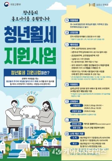 (케이시사타임즈) 김포시가 청년의 주거비 부담을 완화하고 안정적인 생활 기반을 마련하기 위해 ‘2026년 청년월세 지원사업’ 신청을 받는다고 밝혔다. 이번 사업은 지속적인 월세 상승과 취업난 등으로 어려움을 겪는 청년층의 주거 안정을 지원하기 위해 추진된다.