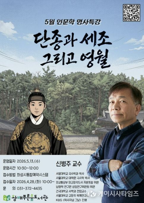 (케이시사타임즈) 화성시문화관광재단 운영하는 왕배푸른숲도서관이 오는 5월 13일, 지역 주민들을 위해 역사학자 신병주 교수를 초청하여 5월 인문학 명사특강을 개최한다.