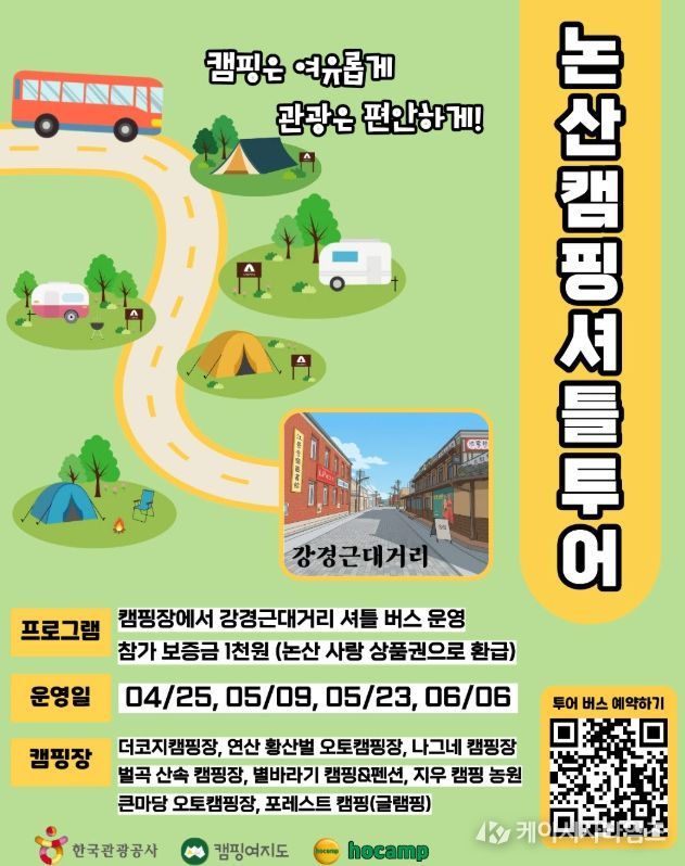 (케이시사타임즈) 논산시는 4월 25일부터 강경근대거리의 관광 매력을 널리 알리고 체류형 관광 활성화를 위해 ‘논산 캠핑 셔틀버스’ 프로그램을 운영한다.