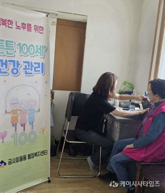‘튼튼100세’ 사업은 금사회동동 복지팀 간호직 공무원이 건강관리를 희망하는 경로당을 차례대로 방문해 △혈압·혈당 측정 등 기초 건강검사 △건강 상담 △만성질환 예방 관리 교육을 제공하는 사업이다.
