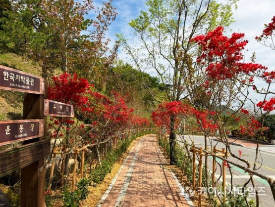 한국차문화공원 일원에는 ‘복합경관숲’이 조성된다. 품평관과 북루 사이 계곡 구간에는 목교 2개소를 설치하고, 팥꽃나무·공조팝나무·사계장미·황금실화백 등 다양한 수종을 식재해 경관을 강화했다.