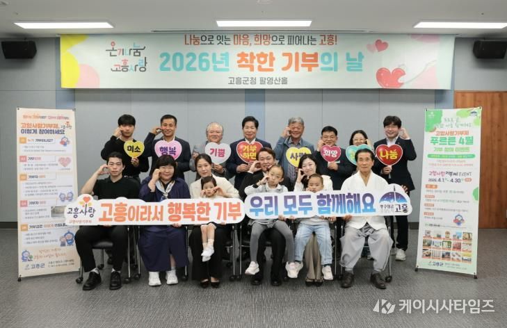 (케이시사타임즈) 고흥군은 지난 23일 군청 팔영산홀에서 4월 ‘착한 기부의 날’ 행사를 개최했다. 이번 행사에는 2개 분야 6팀 15명이 참여해 총 1,960만 원의 기부금이 모였다.