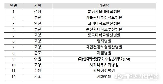 대표단에는 분당서울대학교병원, 가톨릭대학교부천성모병원, 고려대학교안산병원, 순천향대학교부천병원, 동국대학교일산병원, 명지병원, 국민건강보험일산병원, 지샘병원, (재)한국의학연구소(KMI) 수원분사무소, 사과나무치과병원, 강남여성병원, 시화병원 등 도내 의료기관 12개소가 참여했다.