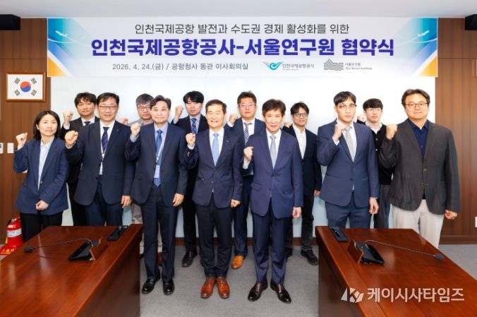(케이시사타임즈) 인천국제공항공사는 지난 24일 청사 회의실에서 서울연구원과 ‘상호협력 및 연구 네트워크 강화를 위한 업무협약’을 체결했다고 26일 밝혔다.