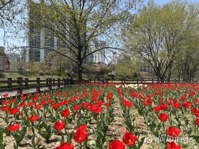 (케이시사타임즈) 의정부시가 하천 구역 내 불법 경작지를 적극 정비하고, 그 자리에 튤립 정원을 조성해 시민들에게 활기찬 봄 풍경을 선사하고 있다.