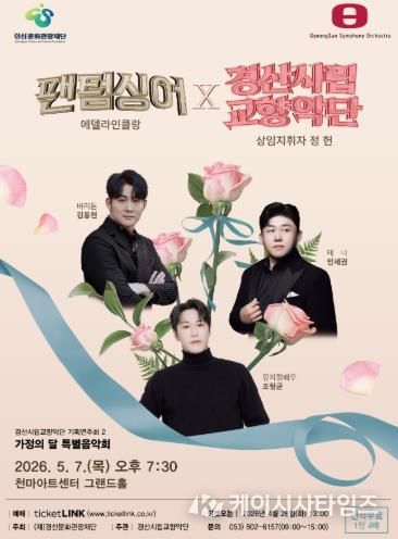 경산시립교향악단 정헌 상임지휘자는 “가정의 달을 맞아 소중한 사람들과 함께 문화적 풍요로움을 만끽할 수 있도록 세심하게 무대를 준비했다” 며, “섬세한 오케스트라 선율과 파워풀한 가창력이 어우러지는 이번 공연이 시민들에게 일상의 위로와 가족의 소중함을 되새기는 뜻깊은 선물이 되길 바란다” 고 전했다.