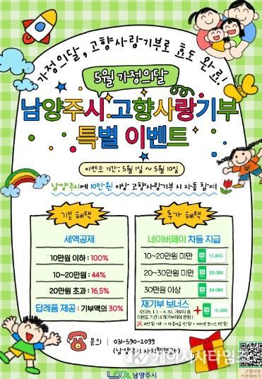 (케이시사타임즈) 남양주시는 가정의 달을 맞아 5월 1일부터 10일까지 고향사랑기부 특별선물 증정 이벤트를 추진한다고 30일 밝혔다.