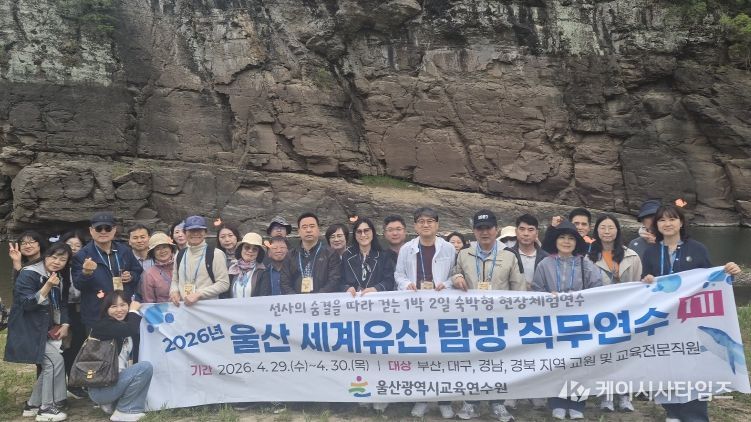 (케이시사타임즈) 울산광역시교육연수원은 지난 29~30일 2일간 부산, 대구, 경남, 경북 지역 초중등 교원과 교육전문직원 32명을 대상으로 ‘울산 세계유산 탐방 직무연수’를 운영했다.