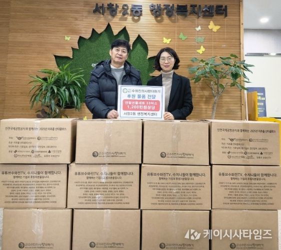 케이시사타임즈 관리자 기자 | 인천시 남동구 서창2동 행정복지센터는 (사)수와진의 사랑더하기로부터 어려운 이웃을 위한 겨울 선물세트 50상자를 기부받았다고 19일 밝혔다.