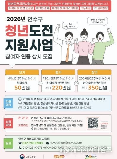 케이시사타임즈 관리자 기자 | 연수구는 청년들의 경제 활동과 노동시장 진입을 돕기 위해 ‘2026년 청년도전지원사업’ 참여자를 모집한다.