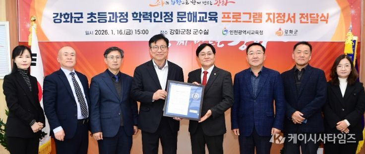 케이시사타임즈 관리자 기자 | 인천광역시교육청은 강화군 내 저학력 성인의 기초학력 지원을 위해, 강화군청을 ‘초등 학력인정 문해교육 프로그램’ 운영기관으로 지정하고, 16일 지정서를 전달했다.