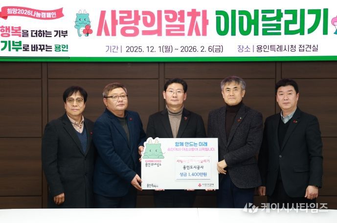케이시사타임즈 관리자 기자 | 용인도시공사는 19일 ‘노사합동 사랑의열차 이어달리기’ 성금 1,400만원을 용인특례시에 기탁했다.