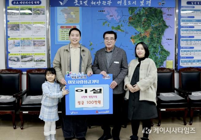 케이시사타임즈 관리자 기자 | 보령시는 지난 20일 시장실에서 이지원 씨와 배우자 고가슬 씨, 그리고 딸 이설 양이 참석한 가운데 ‘희망 나눔 캠페인’ 성금 전달식을 가졌다. 이날 이 씨 가족은 이설 양의 생일을 기념해 정성껏 마련한 성금 100만 원을 보령시에 기탁했다.