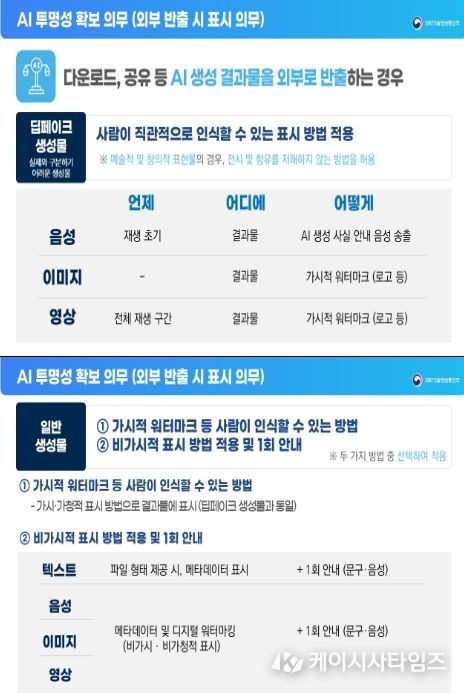 (케이시사타임즈) 과학기술정보통신부는 1월 22일'인공지능 발전과 신뢰 기반 조성 등에 관한 기본법' ‘인공지능 기본법’)상 투명성 확보 의무(제31조)의 구체적인 이행 방안을 담은'인공지능 투명성 확보 안내 지침(가이드라인)'을 공개했다.