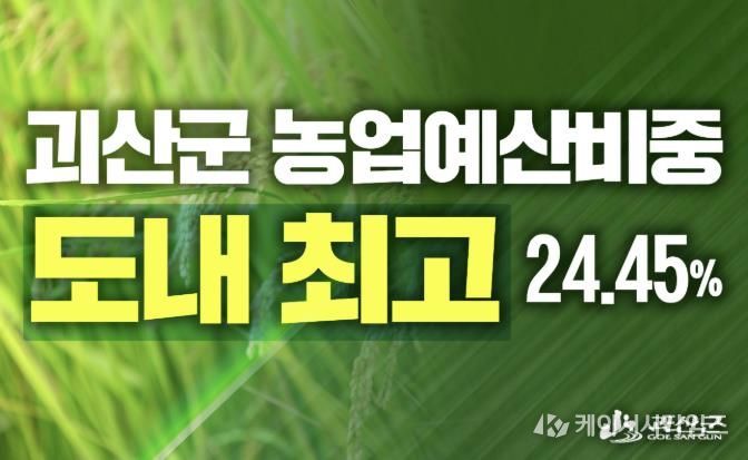군이 23일 공개한 2026년 시·군별 예산 현황에 따르면 괴산군의 본예산 대비 농업 부문 예산 비율은 24.45%로 충북 11개 시·군 가운데 1위에 올랐다. 도 전체 평균(11.86%)과 비교해도 두 배를 훌쩍 넘는 지원이다.
