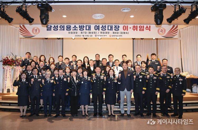 (케이시사타임즈) 대구 달성소방서 여성의용소방대장 이·취임식이 23일 비슬산유스호스텔 대강당에서 열렸다. 이날 행사에는 최재훈 달성군수를 비롯해 군의원, 소방공무원, 의용소방대원 등 100여 명이 참석해 자리를 함께했다.