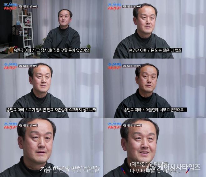 (케이시사타임즈) TV CHOSUN 극사실주의 다큐 예능 ‘조선의 사랑꾼’에서 '국대 출신' 축구선수 송민규의 아버지가 아들의 결혼식에 앞서 가난했던 과거를 회상한다.